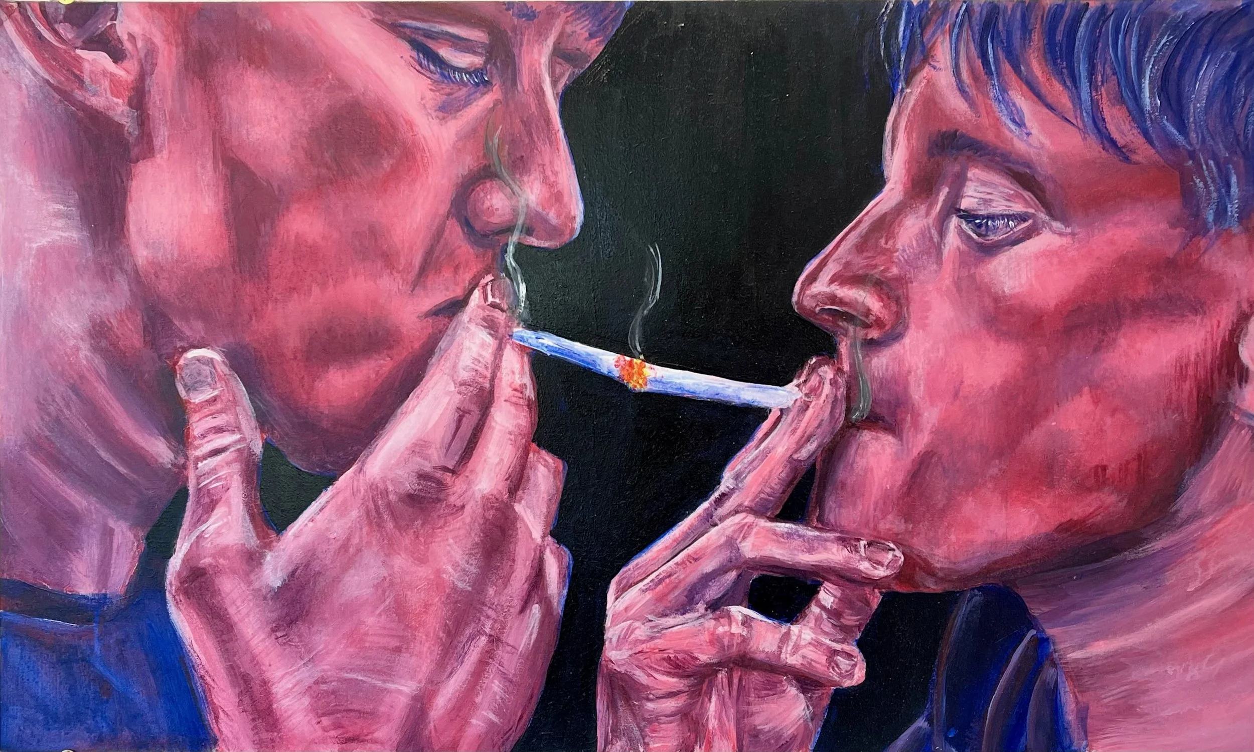 Self-Portrait of the Artist Hesitating Between the Arts of Dance and Music and Painting, 2024, acrylic on canvas, 2.4 x 1.4m