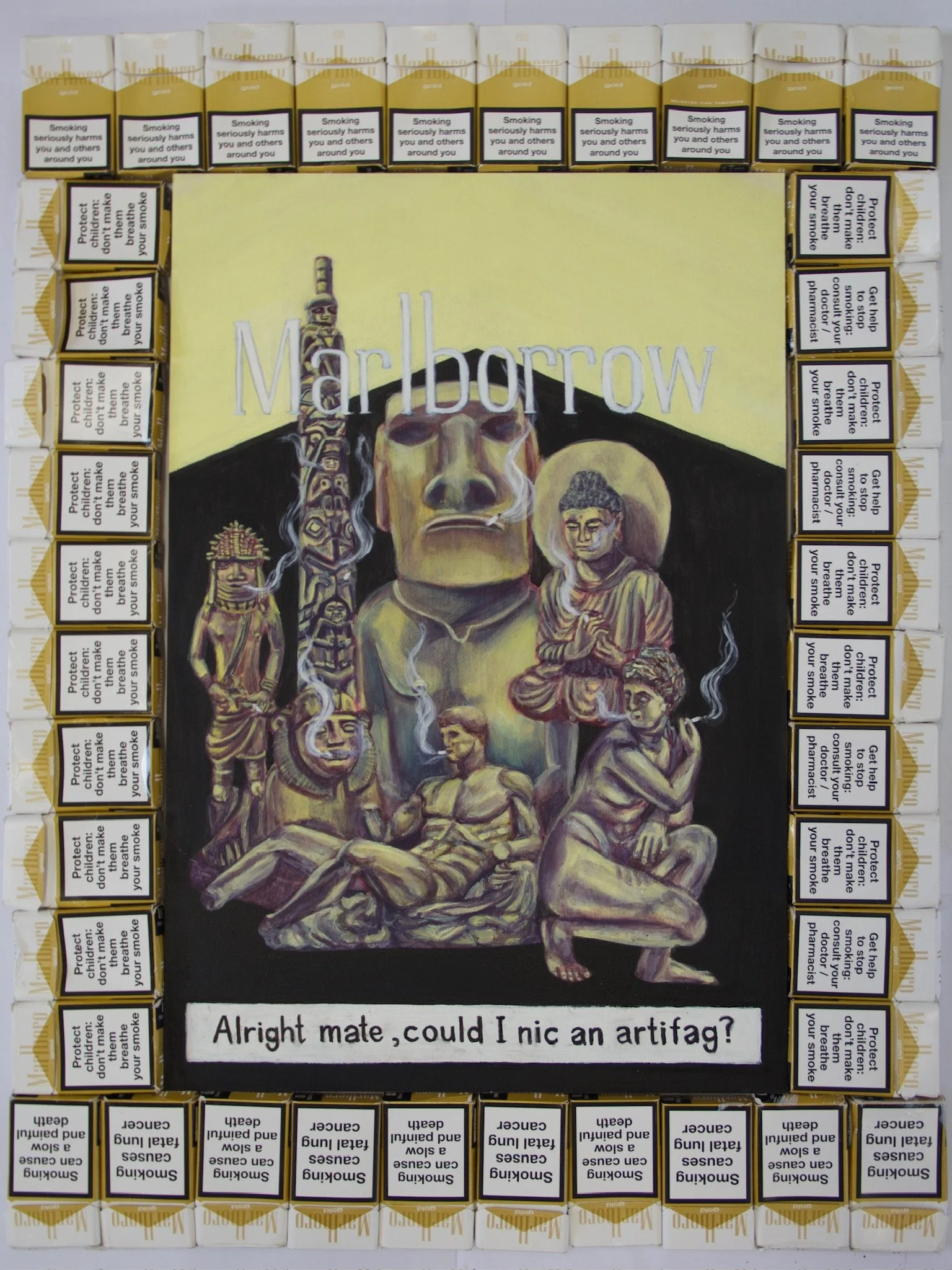 Marlborrow, 2025, acrylic on panel with mixed media, 58 x 74cm
